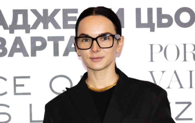 Обов’язковий елемент стилю Інни — чорні окуляри в класичній оправі, що додають строгості, а масивне золотисте кольє на шиї завершило образ, створюючи баланс між діловою строгістю і розкішшю.