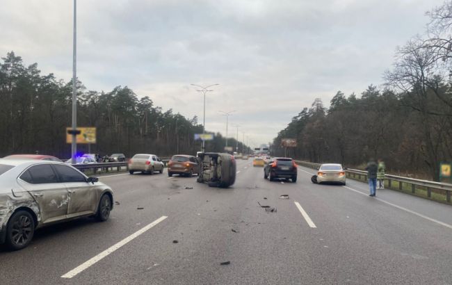 На Бориспільському шосе у напрямку виїзду до Києва сталась масштабна аварія за участі кількох автомобілів. Рух до столиці ускладнено.