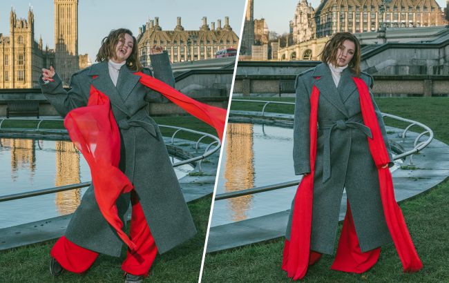 Співачка Оля Цибульська продемонструвала ефектний образ у Лондоні, поєднавши класичне сіре пальто з яскравими червоними акцентами. Контрастна палітра та стриманий крій зробили її «лук» помітним і водночас елегантним на тлі знакової британської архітектури.