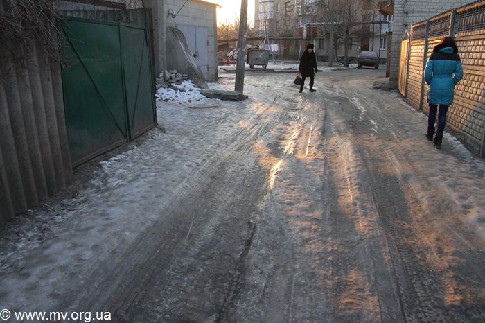 Во время непогоды снег падал, подтаивал, снова падал, его втаптывали люди. Как результат — горбы льда, по которым с трудом можно пройти и проехать. Как рассказывает Надежда, проживающая в доме №20, во дворах много школьников, регулярно идущих на занятия, и пенсионеров, которые тоже не сидят по квартирам. На глазах у девушки, поскользнувшись на льду, дважды падали люди. Начинаясь с проезда, ледяной покров проходит и около 20 дома, тем временем как возле дома №18 чисто. Тем не менее неблагополучный проезд приходится преодолевать и жителям этой пятиэтажки. Чтобы обойти его , нужно делать крюк. Обращение жильцов к депутатам тоже не дало результата.