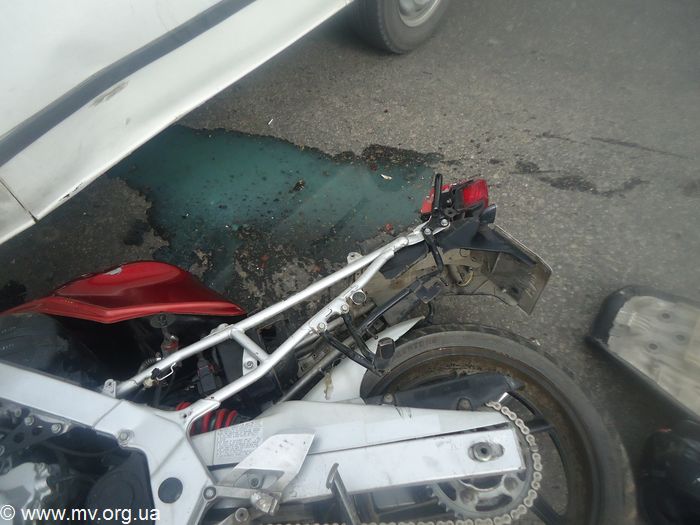 ДТП произошло сегодня в Мелитополе на улице Ломоносова. Примерно в 14.30 мотоциклист въехал в микроавтобус, водитель которого вздумал развернуться и пересек 2 сплошные.